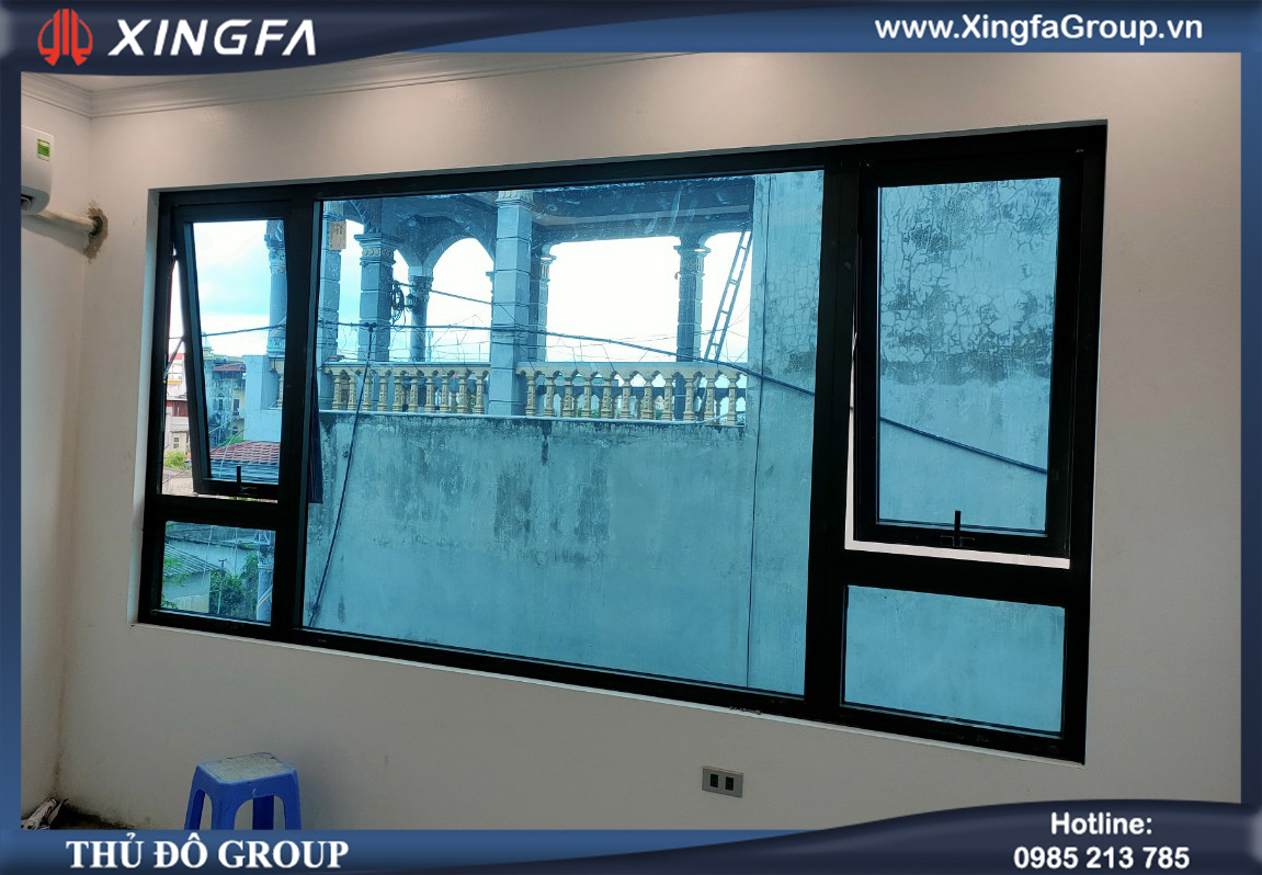 Hình ảnh cửa sổ mở hất nhôm Xingfa + vách kính cố định nhôm Xingfa
