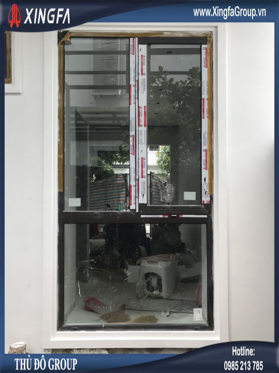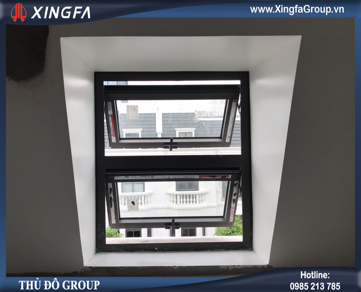 Hình ảnh cửa sổ mở hất nhôm Xingfa thiết kế 1 cánh trên 1 cánh dưới