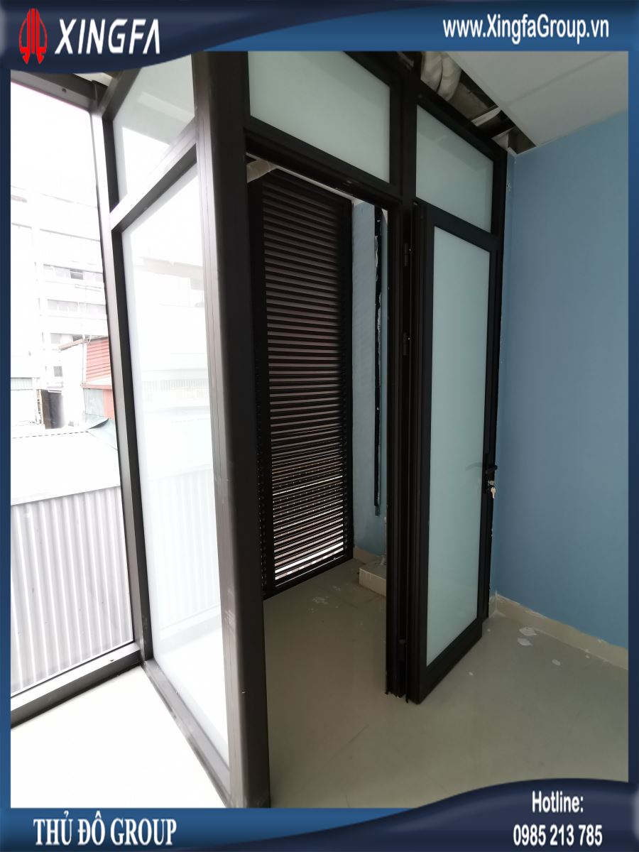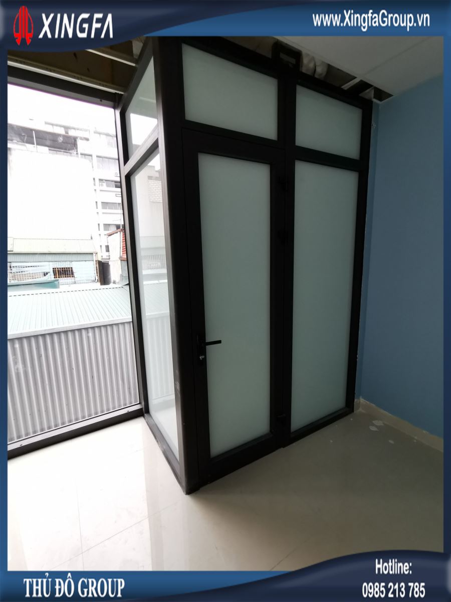 Hình ảnh cửa đi mở quay một cánh nhôm Xingfa chính hãng bên trong tòa nhà