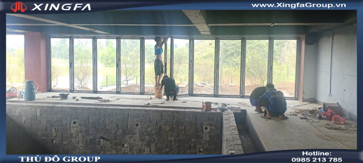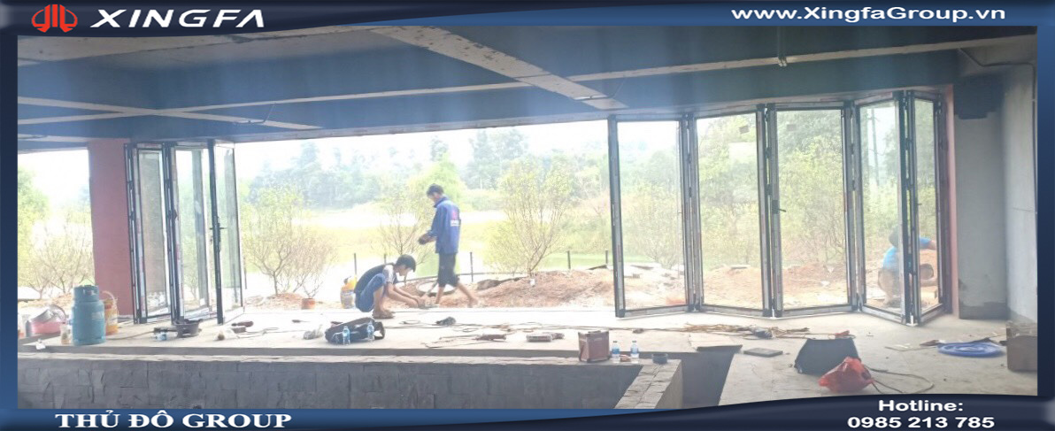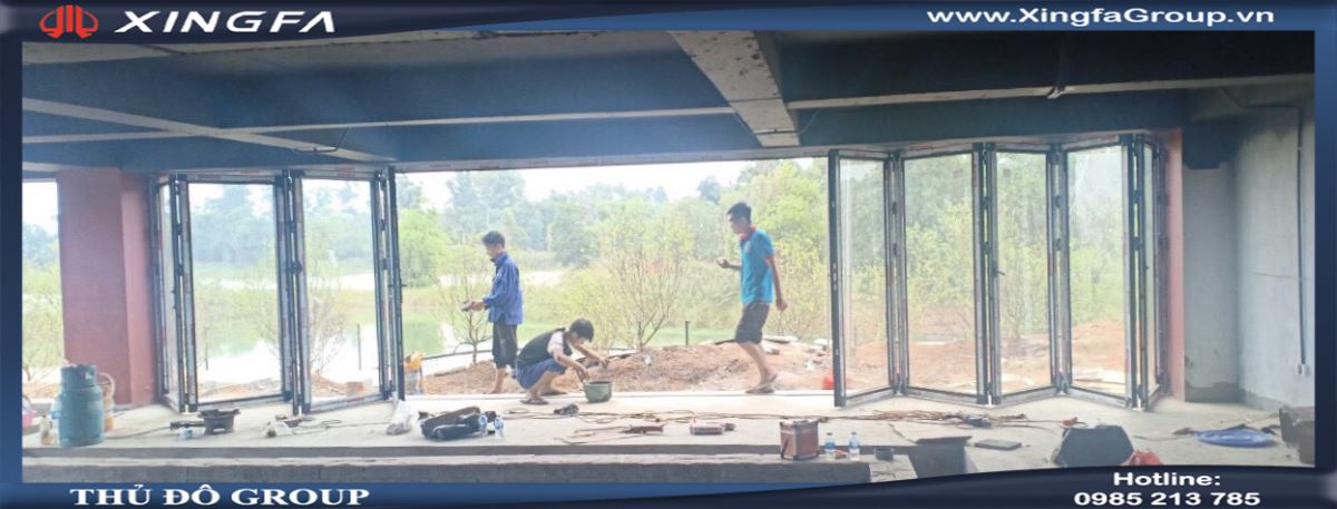 Hình ảnh cửa xếp gấp nhôm Xingfa Thủ Đô Group sản xuất và lắp đặt