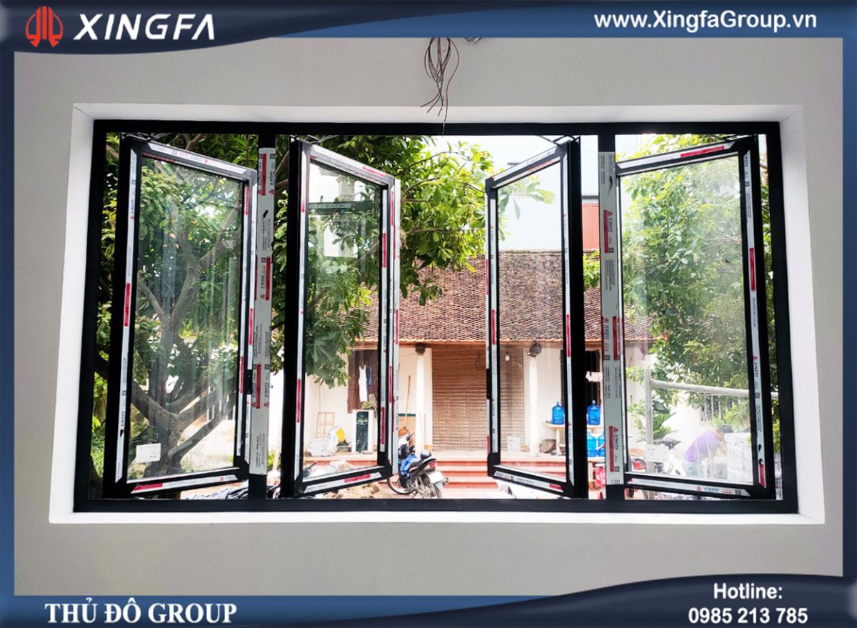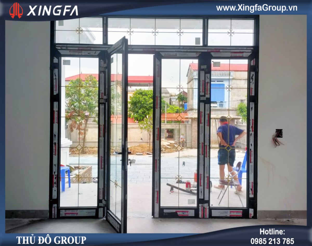 Hình ảnh bộ cửa đi chính mở quay 4 cánh nhôm Xingfa chính hãng 100%