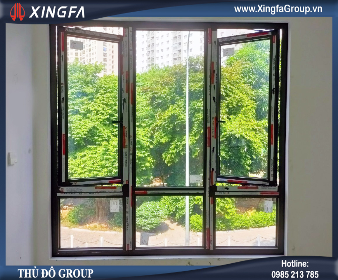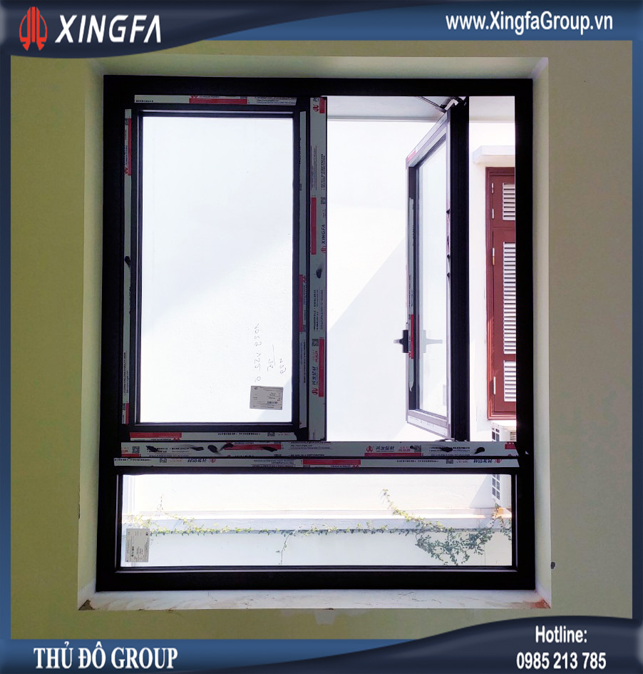 + Cửa sổ mở quay 2 cánh và vạch kính cố định nhôm Xingfa chính hãng