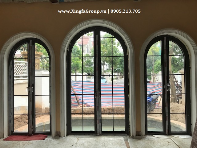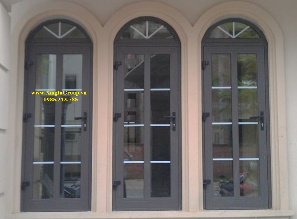 Cửa nhôm Xingfa uốn mái vòm cong chia nhiều đố