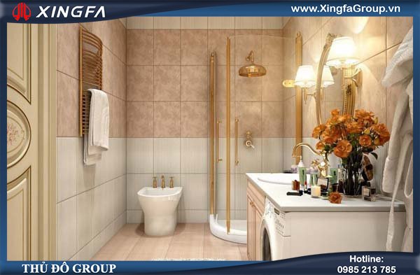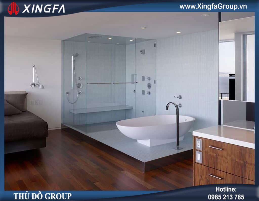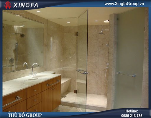 Vách kính nhà tắm sử dụng kính cường lực mầu trà của Thủ Đô Group