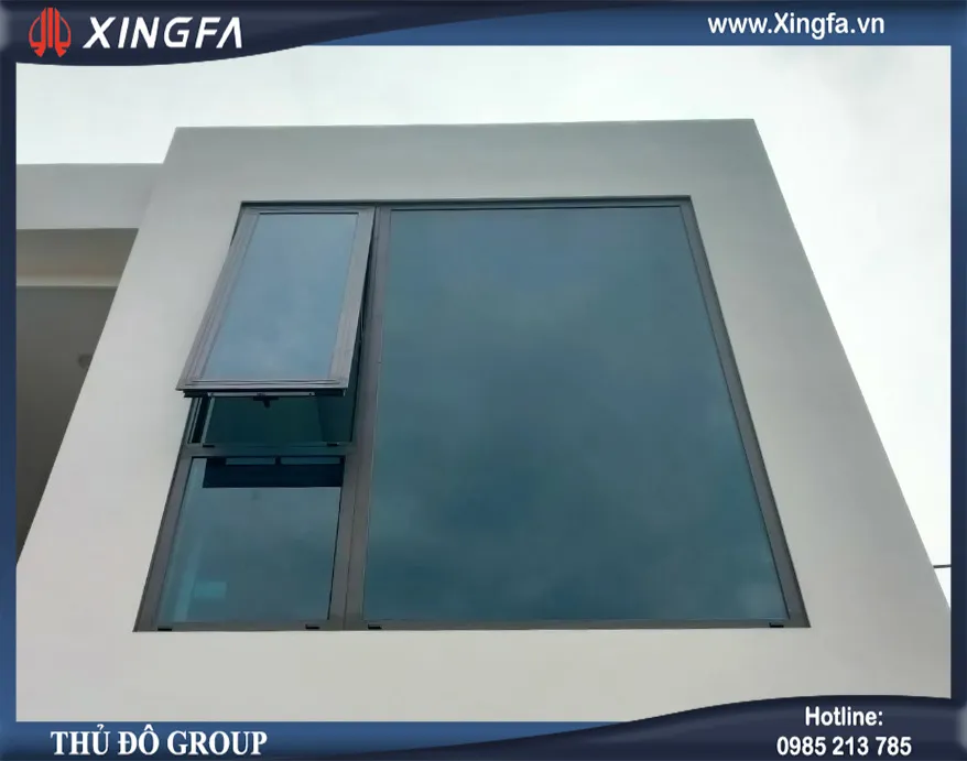 Hình ảnh cửa sổ nhôm Xingfa nhập khẩu mở hất 1 cánh kết hợp vách kính cố định
