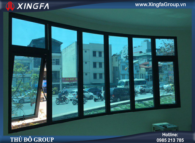 Mẫu cửa sổ mở hất 1 cánh nhôm Xingfa kết hợp vách cố định trên cùng một khung cửa hình cong