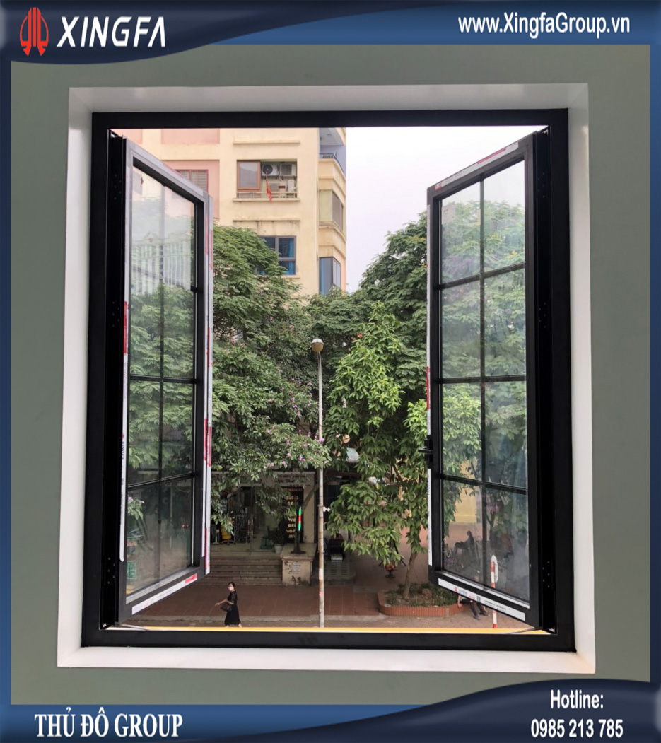 Hình ảnh cửa sổ mở quay 2 cánh nhôm Xingfa hệ 55 chính hãng 100%