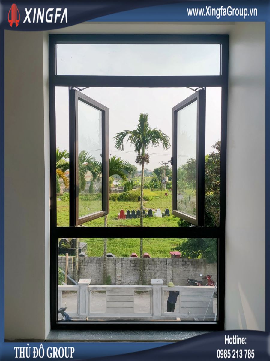 Hình ảnh bộ cửa sổ mở quay + vách kính nhôm Xingfa rất đẹp mắt