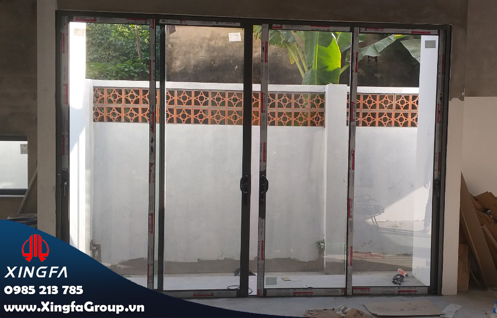 Hình ảnh cửa đi mở trượt 4 cánh nhôm Xingfa do Thủ Đô Group lắp đặt