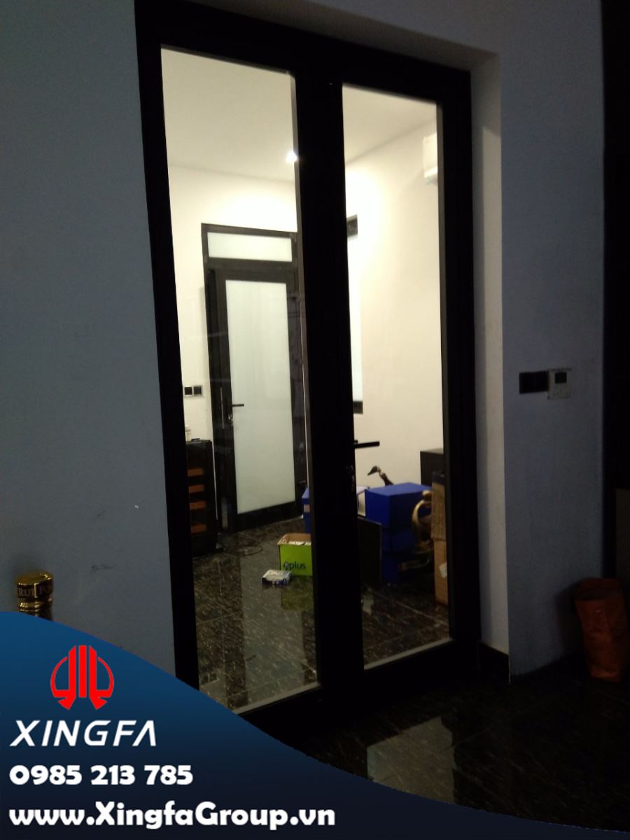 Hình ảnh cửa đi thông phòng mở quay 1 cánh nhôm Xingfa nhập khẩu