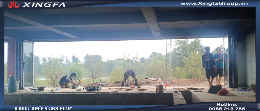 Hình ảnh cửa xếp gấp nhôm Xingfa Thủ Đô Group sản xuất và lắp đặt