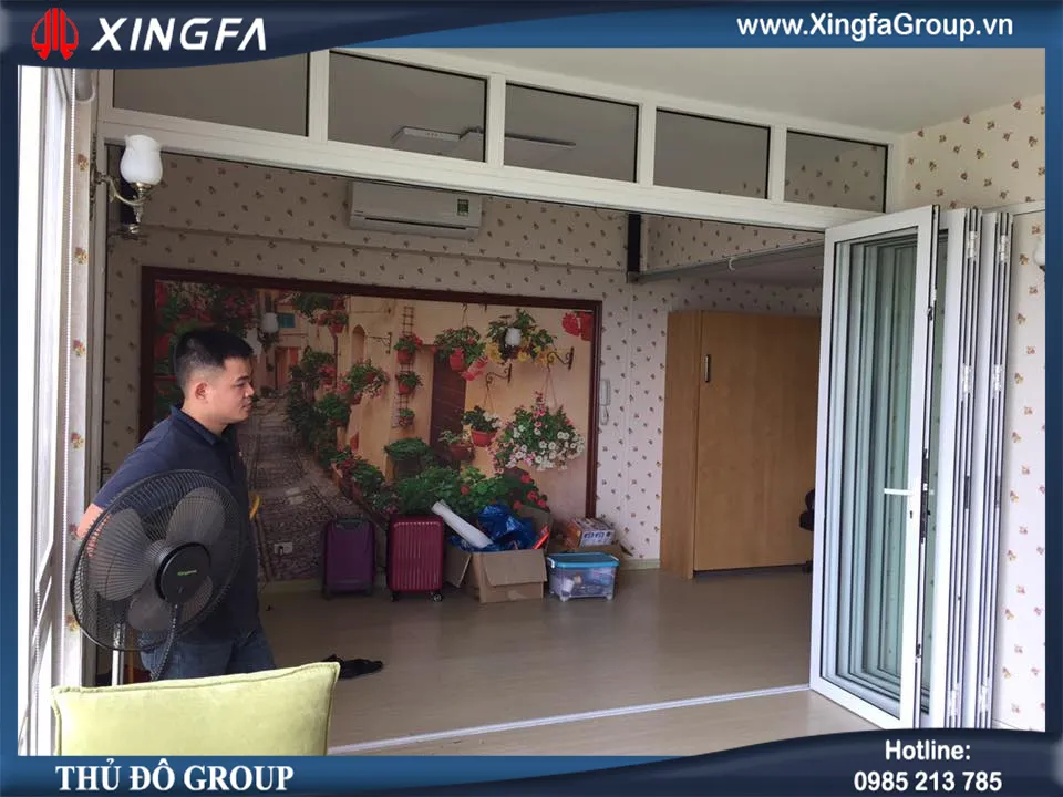 Mẫu cửa nhôm Xingfa thông phòng với thiết kế mở xếp trượt gấp