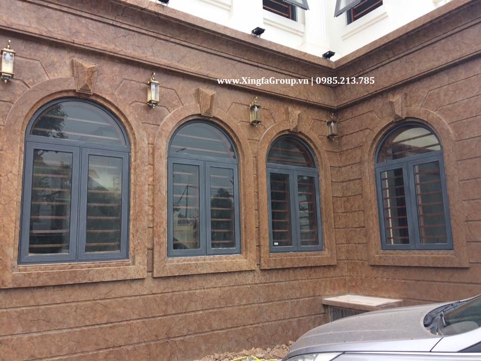 Mẫu cửa sổ nhôm Xingfa kết hợp uốn mái vòm cong trên cùng một khuôn cửa