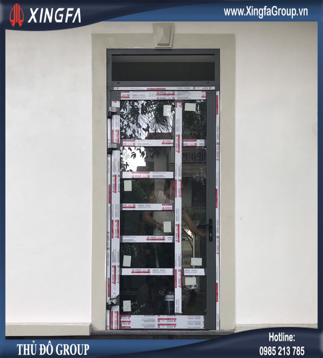 Mẫu cửa đi nhôm Xingfa mở quay 1 cánh chia thêm nhiều đố cửa vững chắc an toàn hơn