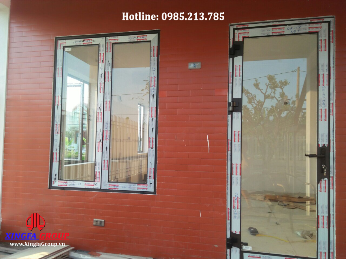 Mẫu cửa đi mở quay 2 cái nhôm Xingfa nhập khẩu chính hãng 100% tại công trình biệt thự ở Ninh Bình.