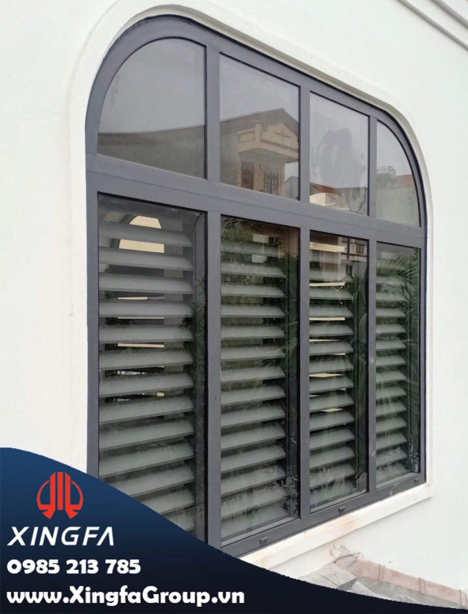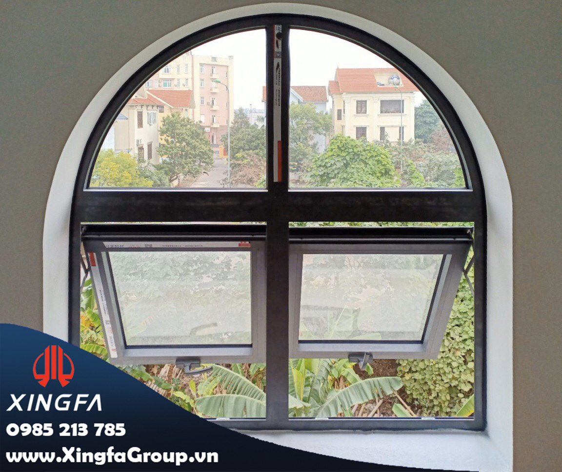 Hình ảnh cửa sổ mở hất 2 cánh nhôm Xingfa + vách kính uốn mái vòm