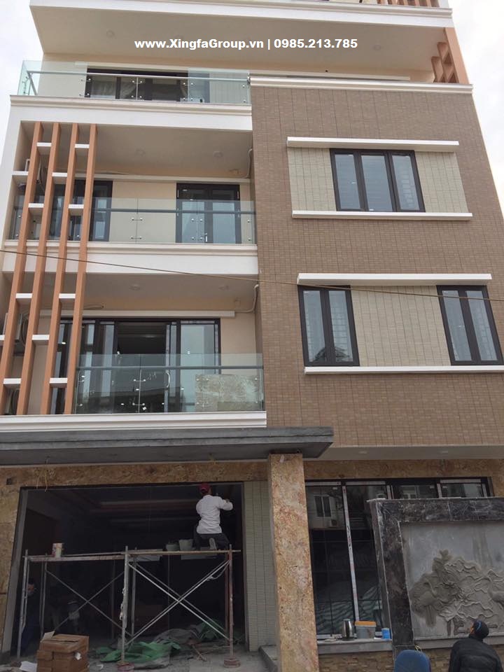 Công trình nhà anh Trường sử dụng 100% hệ thống cửa toàn bộ mặt tiền 4 tầng cũng như các hệ thống cửa thông phòng trong nhà đều bằng mẫu cửa nhôm Xingfa mầu nâu sần ánh kim nhập khẩu chính hãng tem đỏ Quảng Đông có mã Code QR và được sản xuất theo dây chuyền máy móc công nghệ hiện đại tiên tiến bậc nhất hiện nay theo tiêu chuẩn quốc tế của Xingfa Group.