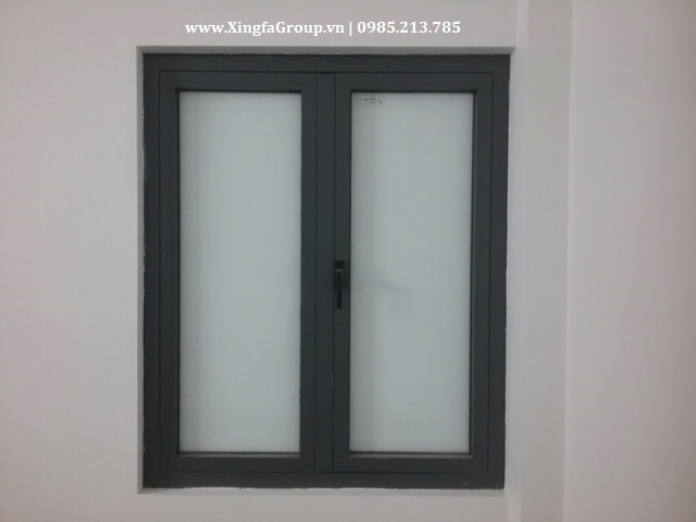 Mẫu cửa sổ nhôm Xingfa mầu ghi sẫm mở quay 2 cánh hệ 55 dày 1.4mm