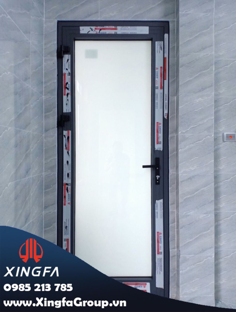 Hình ảnh cửa đi mở quay 1 cánh nhôm Xingfa sử dụng kính trắng sữa