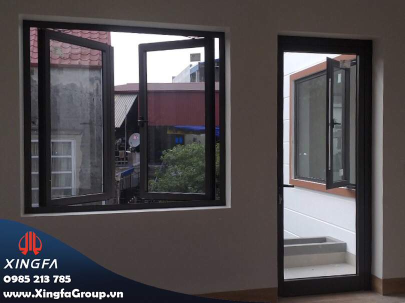 Hình ảnh cửa nhôm Xingfa mở quay và vách kính cố định nhôm Xingfa