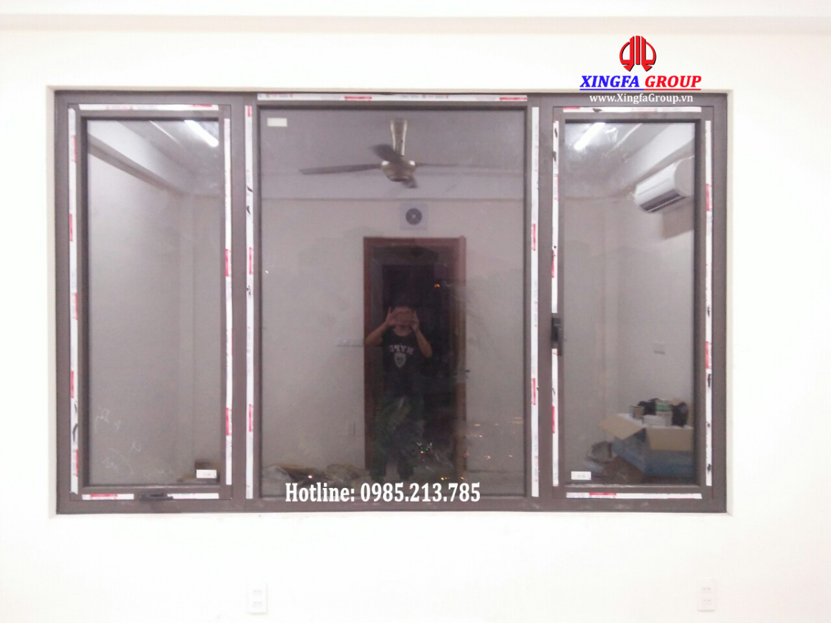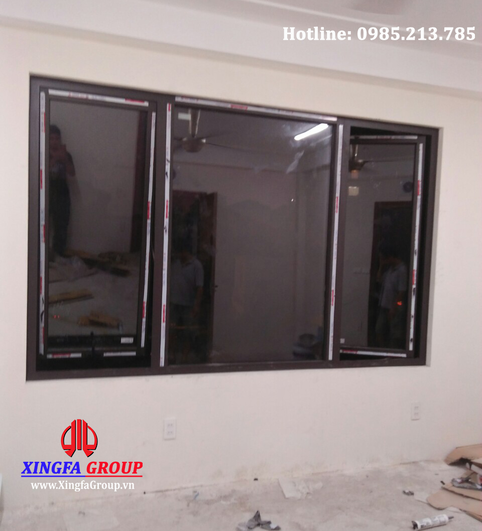 Hình ảnh mẫu cửa sổ mở quay 2 cánh kết hợp với vách kính cố định và cửa sổ mở hất 1 cánh nhôm Xingfa nhập khẩu 100%.