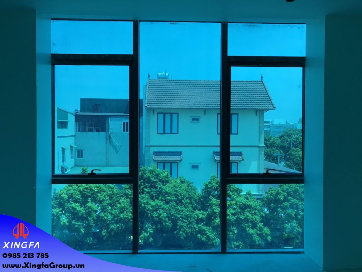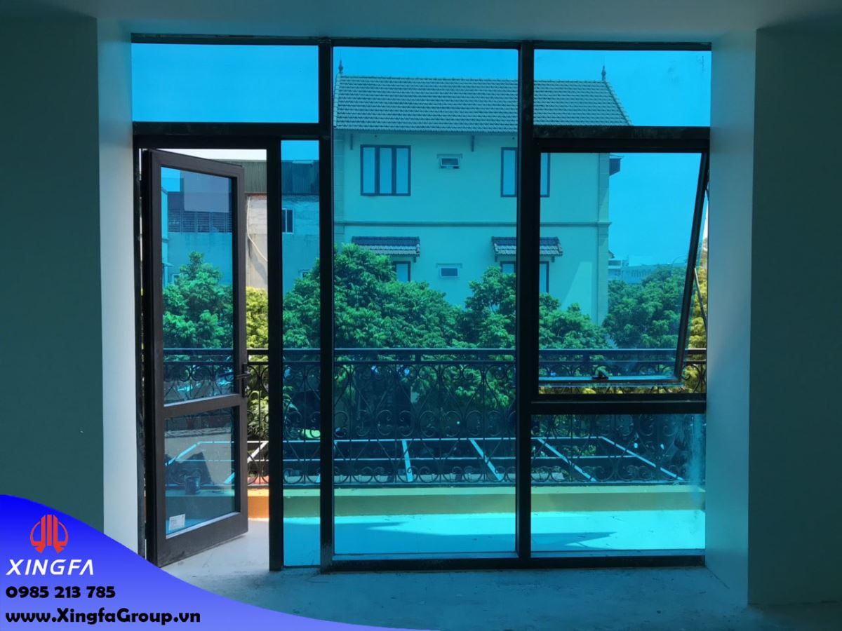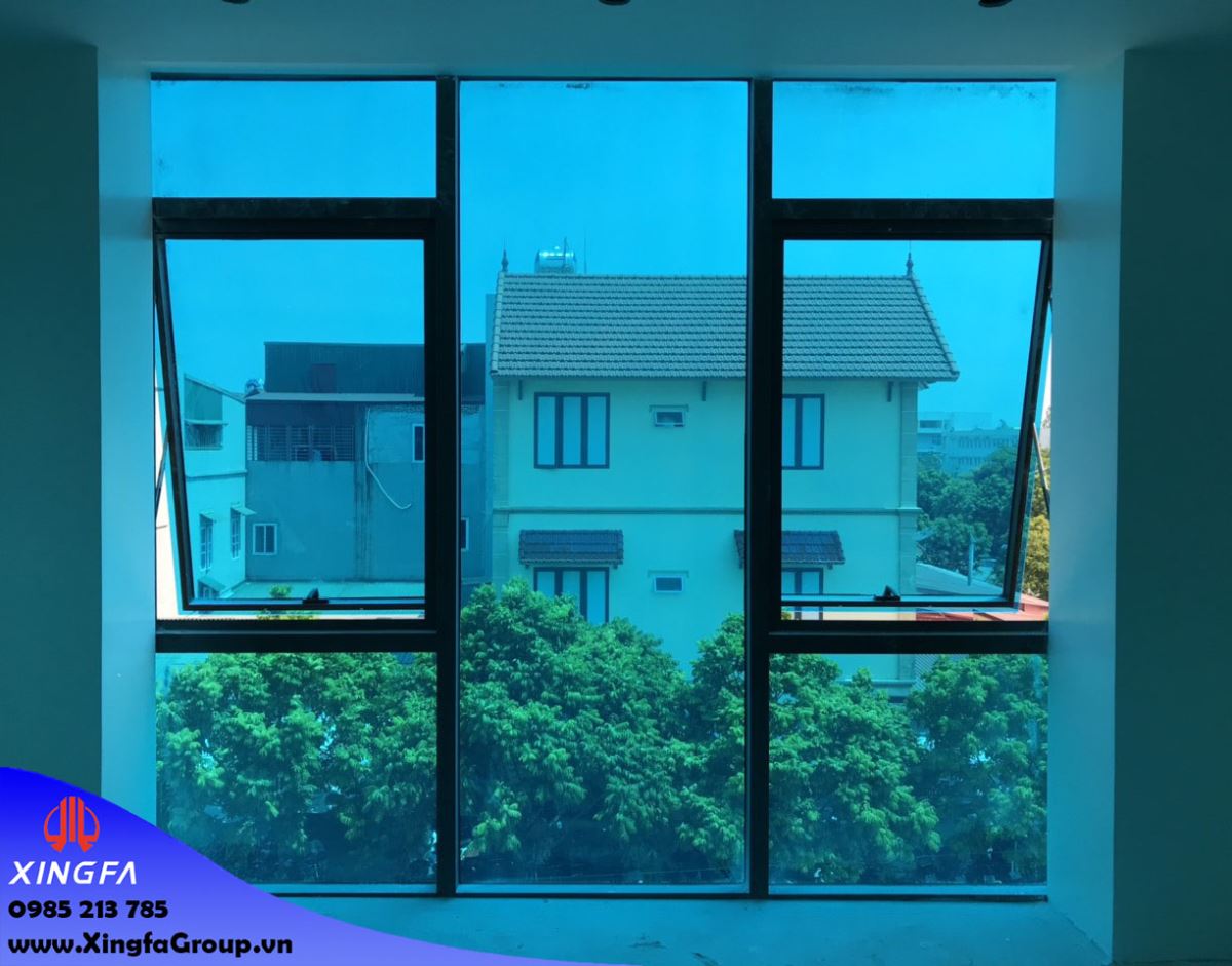 Hình ảnh cửa sổ mở hất nhôm Xingfa nhập khẩu kính mầu xanh