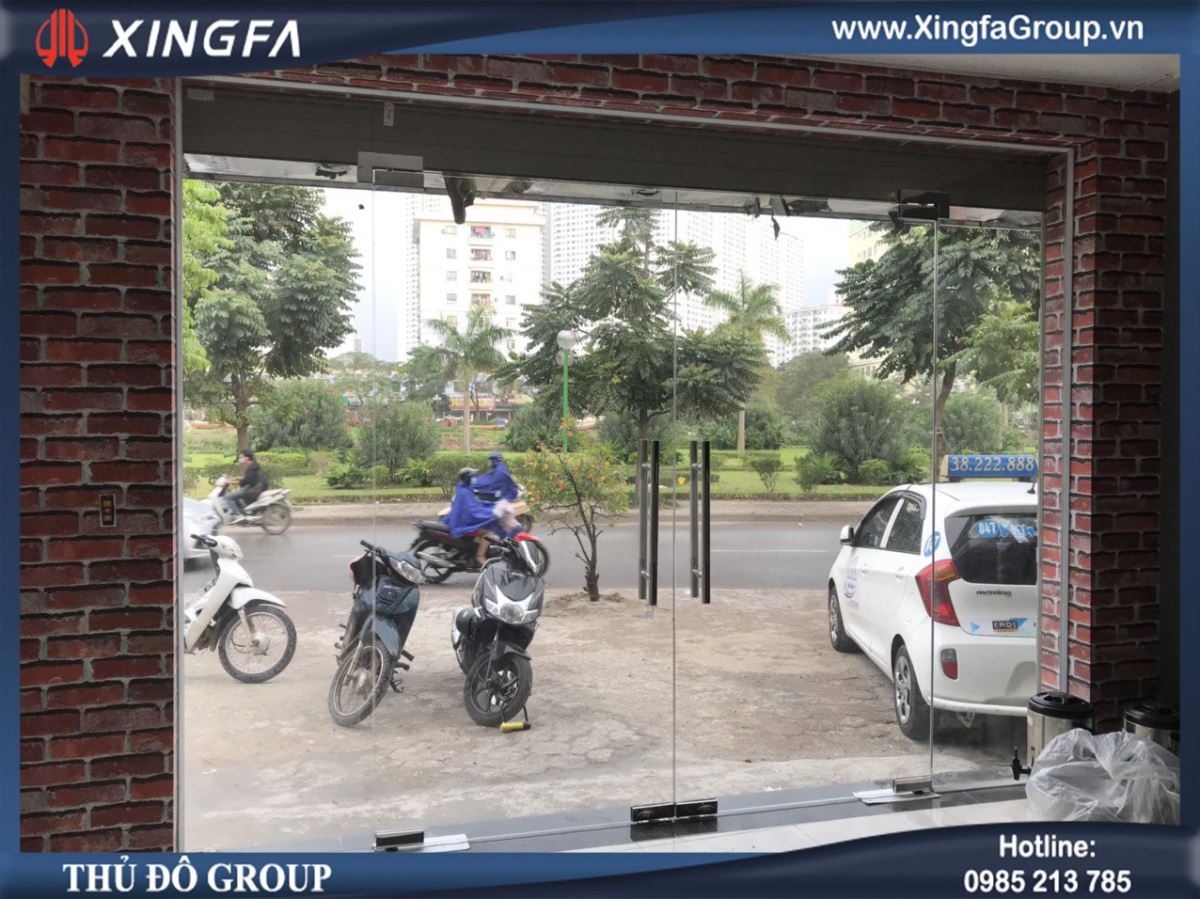 Thủ Đô Group thi công lắp đặt cửa kính cường lực khung nhôm mở bản lề sàn thủy lực