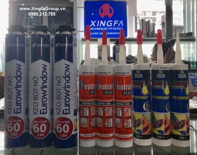 Nhôm Xingfa sử dụng keo Dow Corning Eurowindow đặc chủng kín khít chịu nước tuyệt đối 100%, giãn nở gấp 60 lần & độ bền gấp 10 lần các loại keo giá rẻ khác.