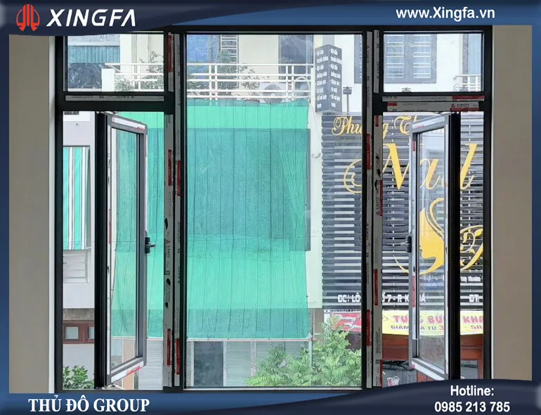 Hình ảnh cửa sổ mở quay 2 cánh nhôm Xingfa nhập khẩu chính hãng