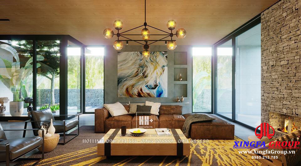 Hình ảnh thiết kế nội thất và cửa nhôm Xingfa tại tầng 1