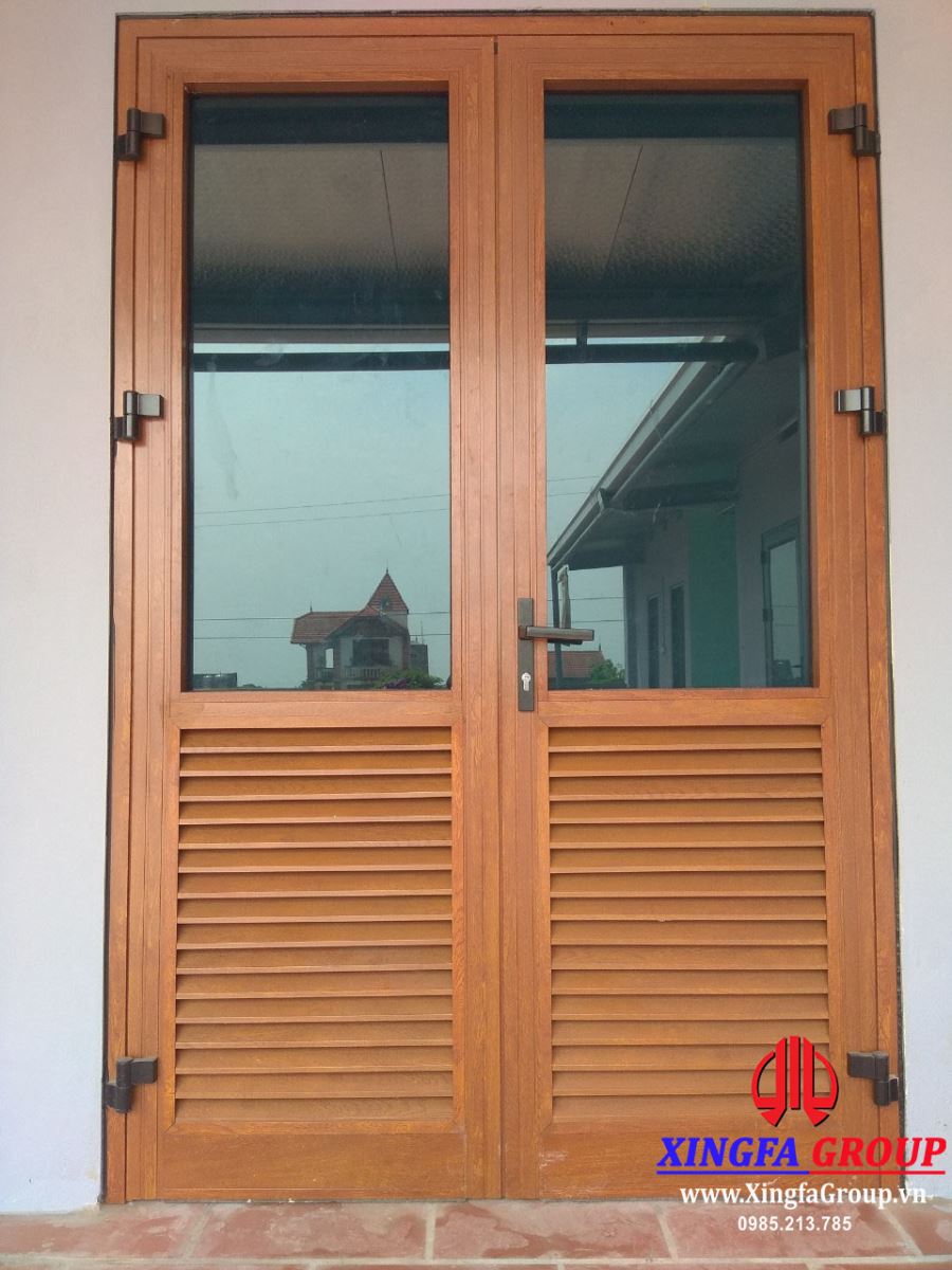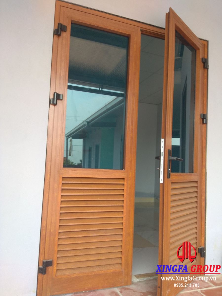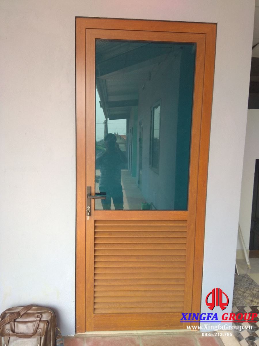 Cửa đi mở quay 1 cánh nhôm Xingfa màu vân gỗ