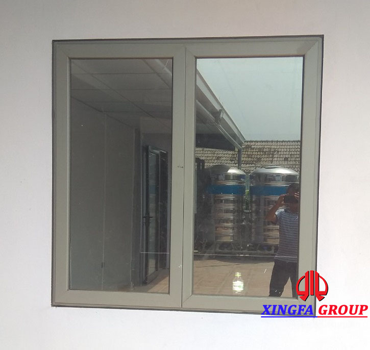 Các bộ cửa nhôm Xingfa màu ghi trên tầng thượng