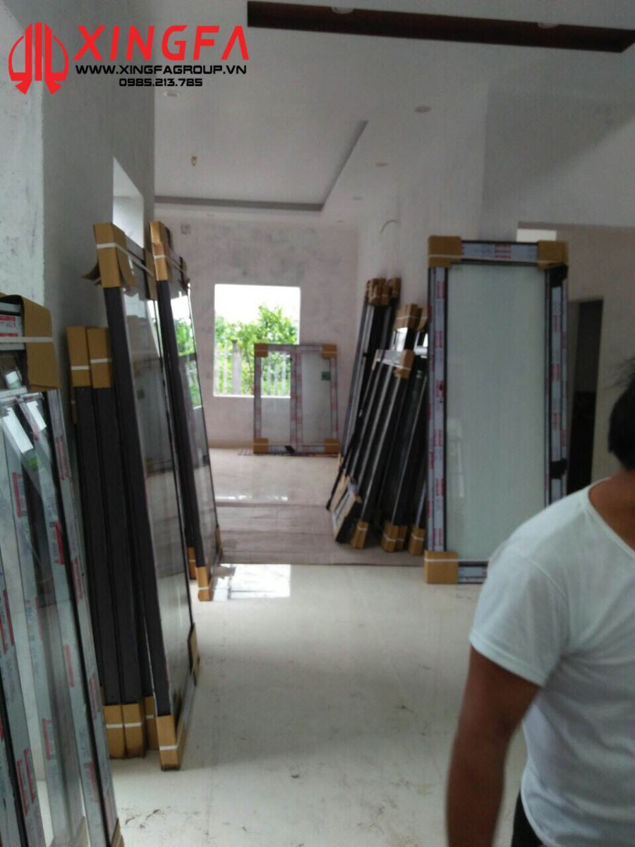 Cửa nhôm Xingfa tại công trình trước khi lắp đặt