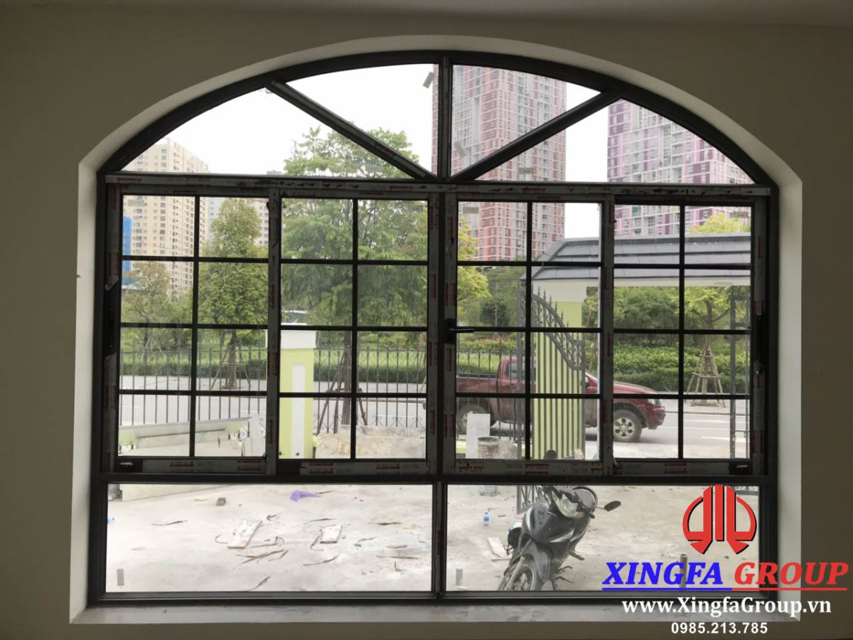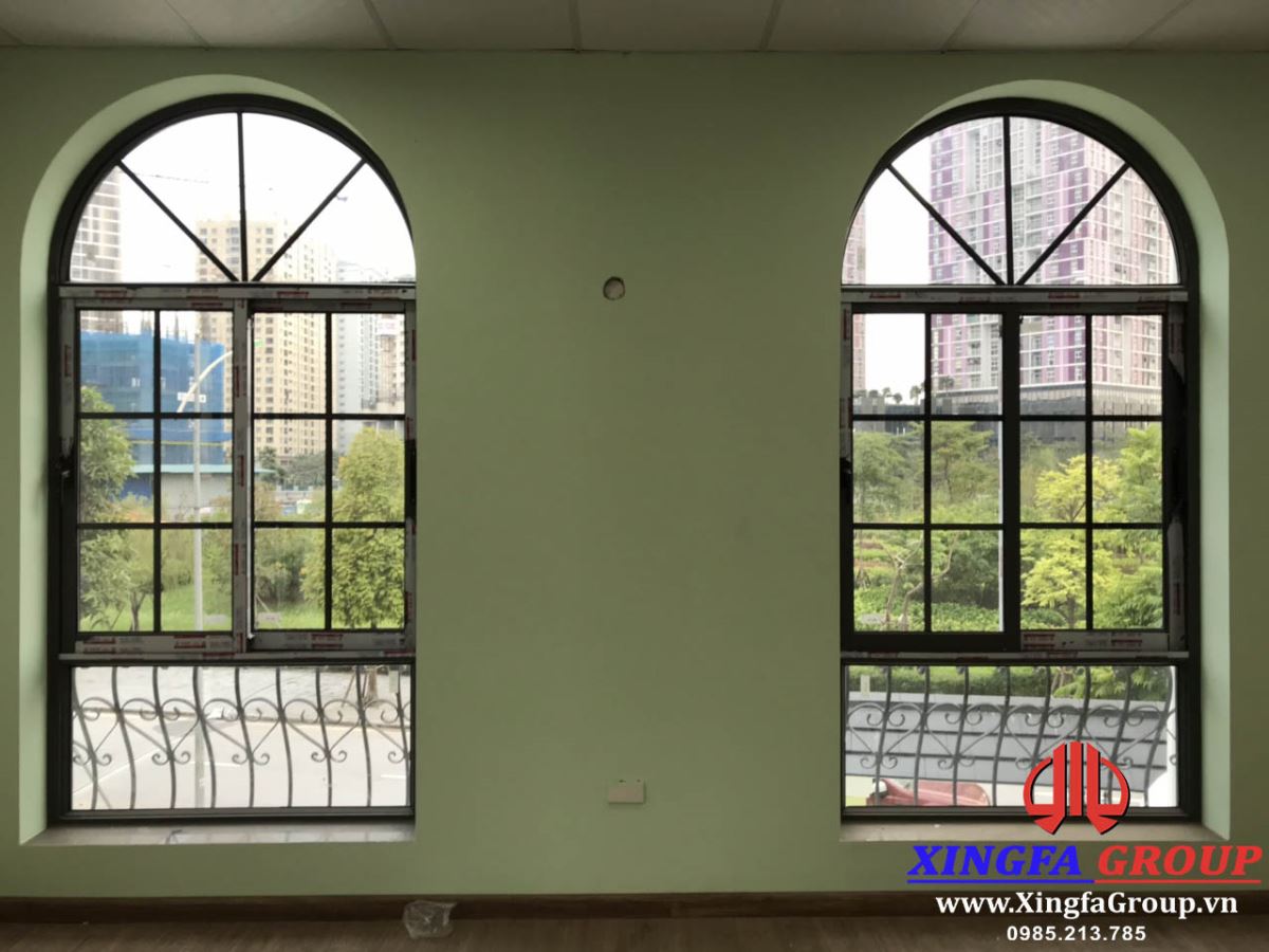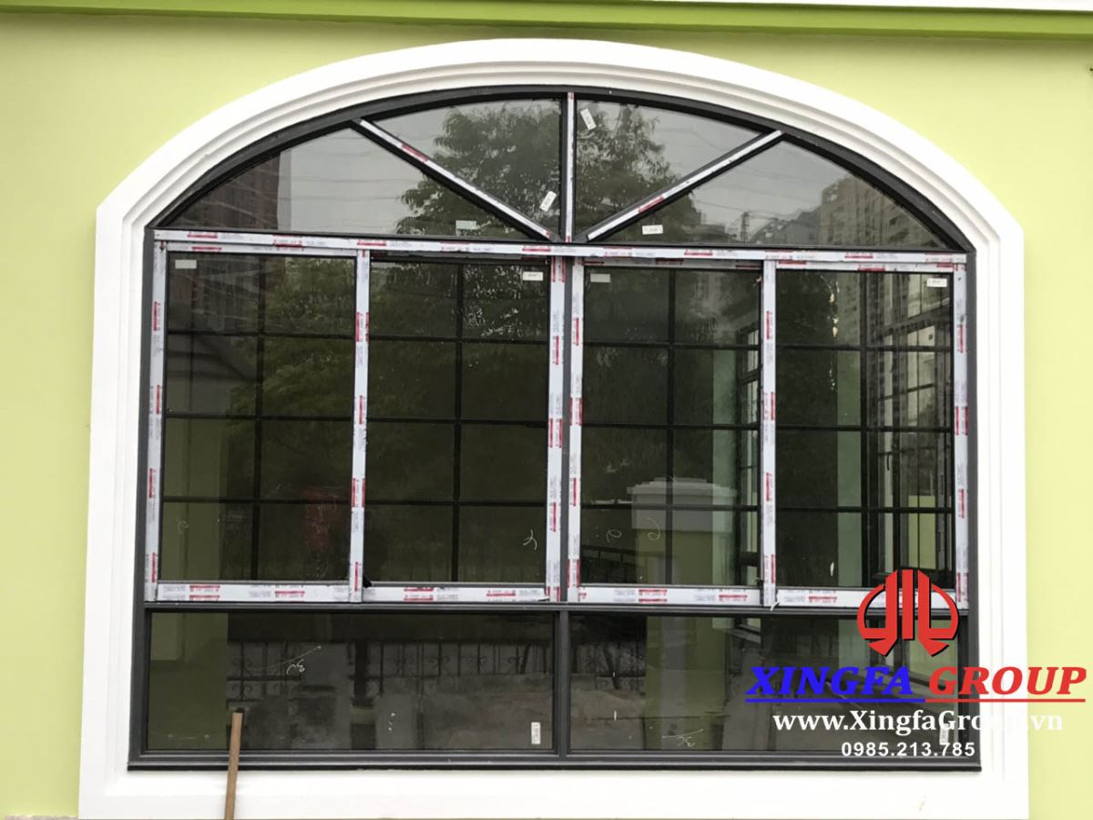 Cửa sổ nhôm Xingfa với vách kính uốn vòm