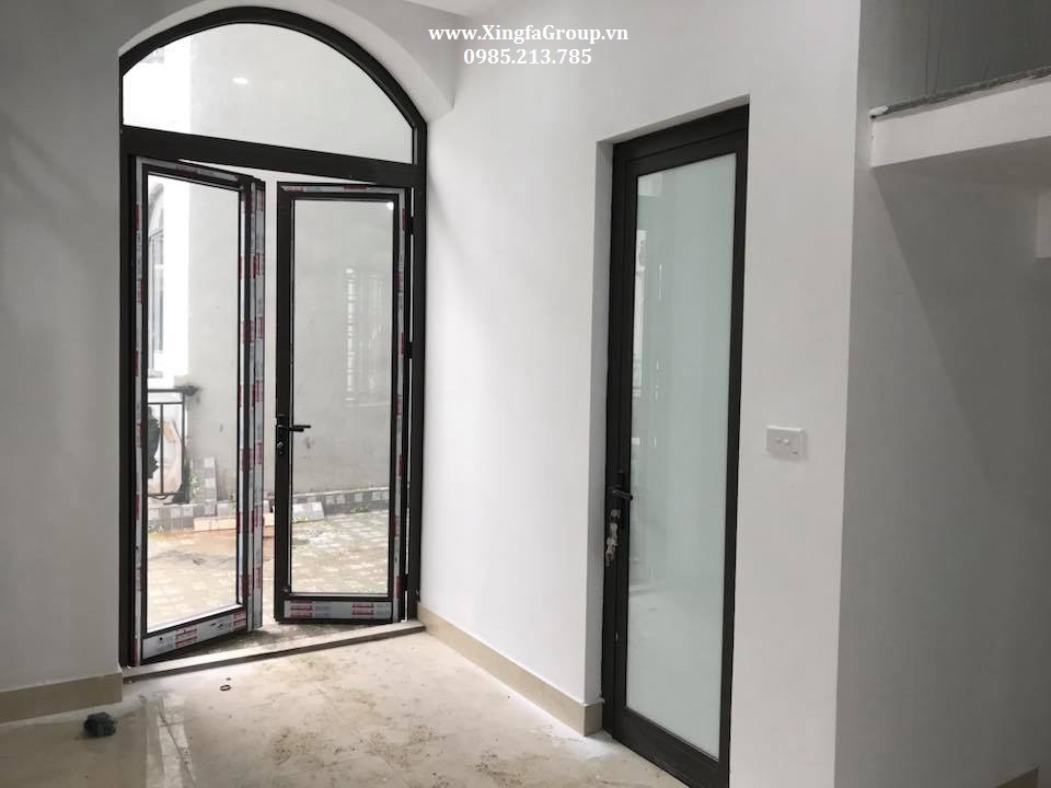 Mẫu cửa đi nhôm Xingfa sử dụng mẫu uốn mái vòm cong bên trên