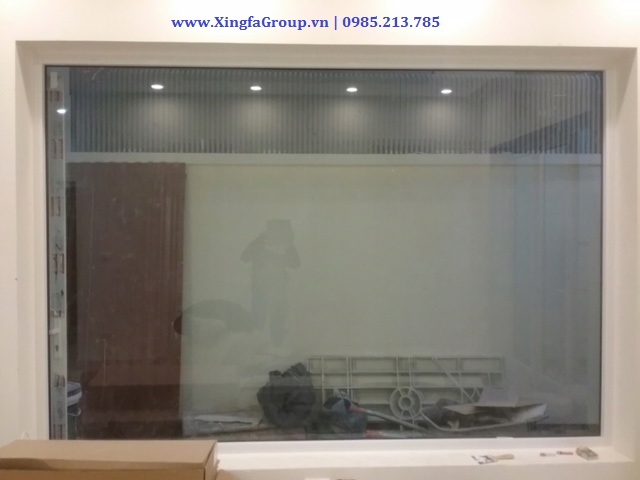 Công trình sử dụng mẫu cửa nhôm Xingfa mầu trắng sứ dùng kính hộp có nan trang trí bên trong