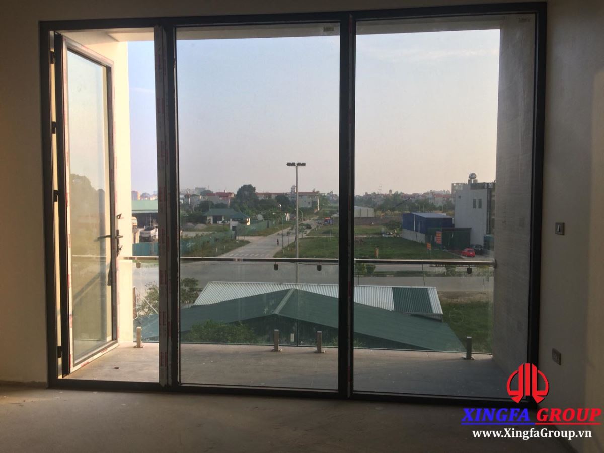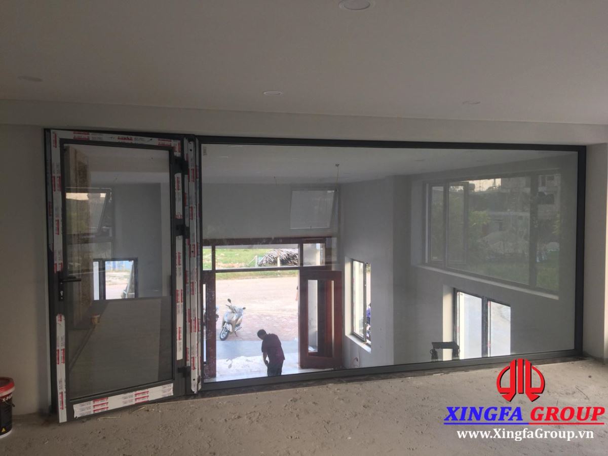Vách kính nhôm Xingfa kết hợp cửa đi mở quay