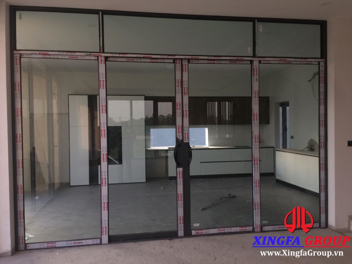 Bộ cửa đi nhôm Xingfa bản to hệ 93 mở trượt bốn cánh vào bếp