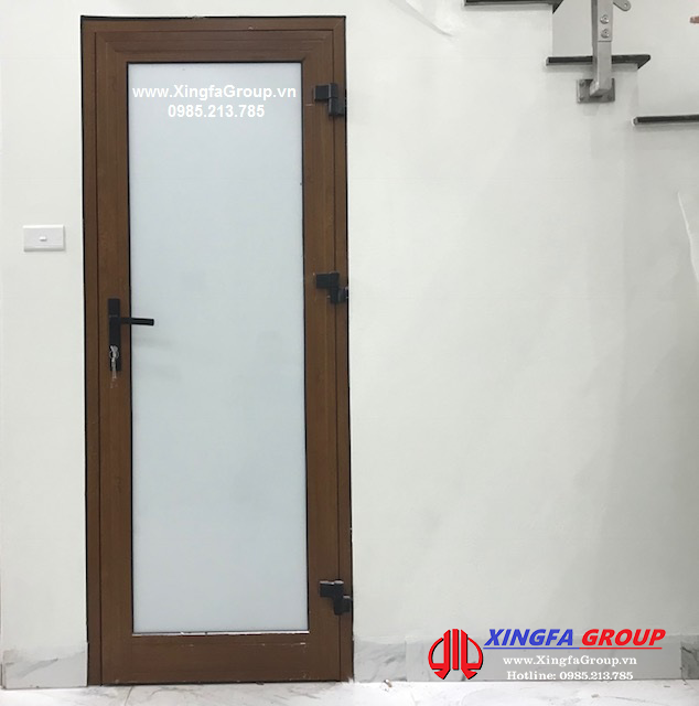 Mẫu cửa đi mở quay 1 cánh nhà tắm wc dùng kính mờ phun sữa nhôm Xingfa hệ 55 dày 2.0mm