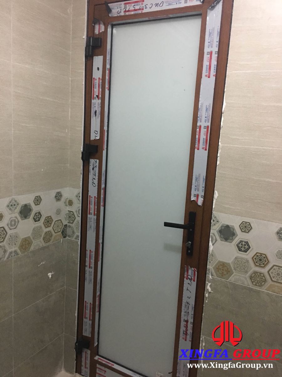 Cửa đi mở quay nhôm Xingfa màu vân gỗ