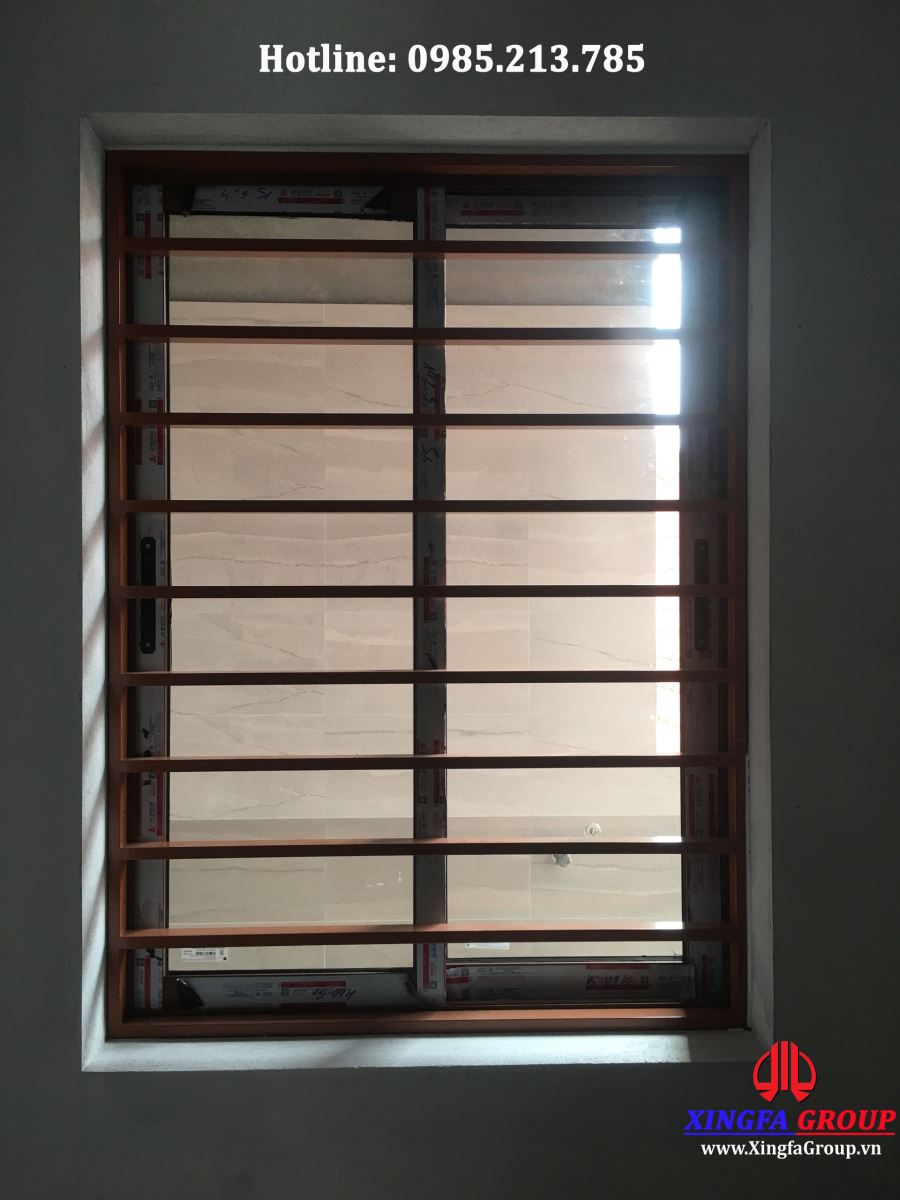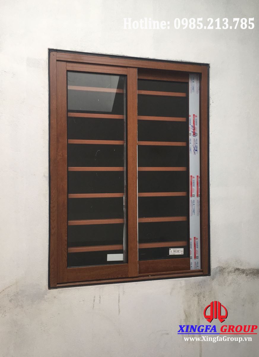 Mẫu cửa sổ mở trượt 2 cánh mầu vân giả gỗ nhôm Xingfa cao cấp hệ 93 dầy 2.0mm.