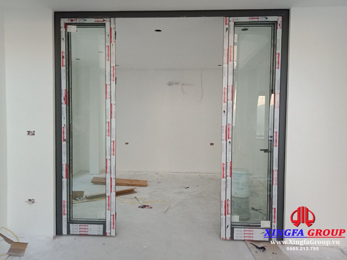Cửa đi mở quay 4 cánh nhôm Xingfa hệ 55 dày 2.0mm