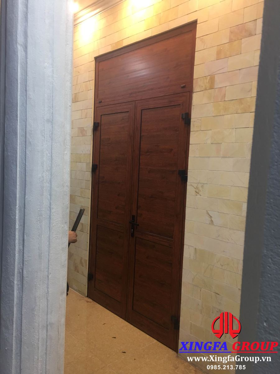 Cửa đi nhôm Zhongkai dùng pano nhôm màu vân gỗ