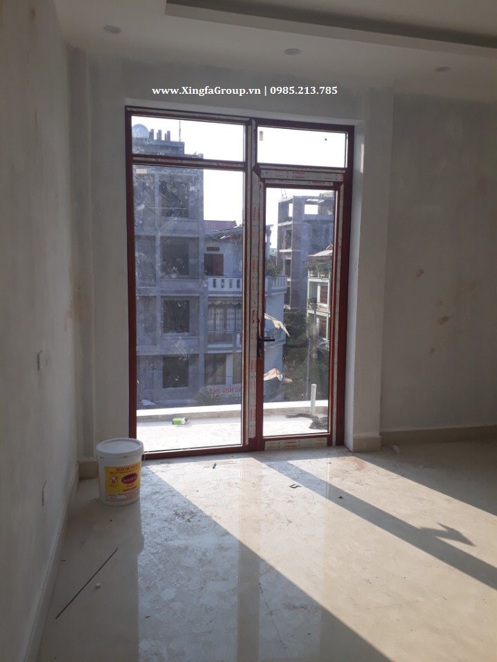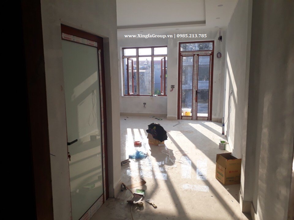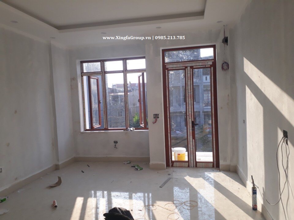 Công trình nhà ở nhà anh Huy ở Đại Bái, Gia Bình, Bắc Ninh sử dụng sản phẩm cửa nhôm Xingfa mầu vân gỗ (cửa nhôm hệ Xingfa Zhongkai) nhập khẩu chính hãng Quảng Tây sử dụng tương thích phụ kiện Kinlong cao cấp, kính an toàn Hải Long, keo Dowcorning Eurowindow đặc chủng, keo ép góc PU88 đặc chủng, ốc vít Inox chống han rỉ theo thời gian..
