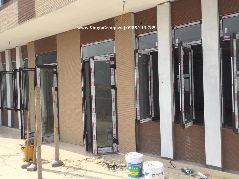 Mầu nhôm: công trình sử dụng mẫu cửa nhôm Xingfa mầu nâu sần ánh kim truyền thống
