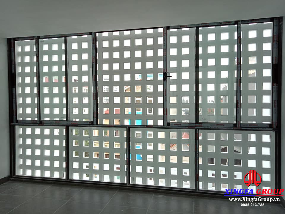 Cửa sổ mở trượt lùa 4 cánh nhôm Xingfa và vách kính phía dưới