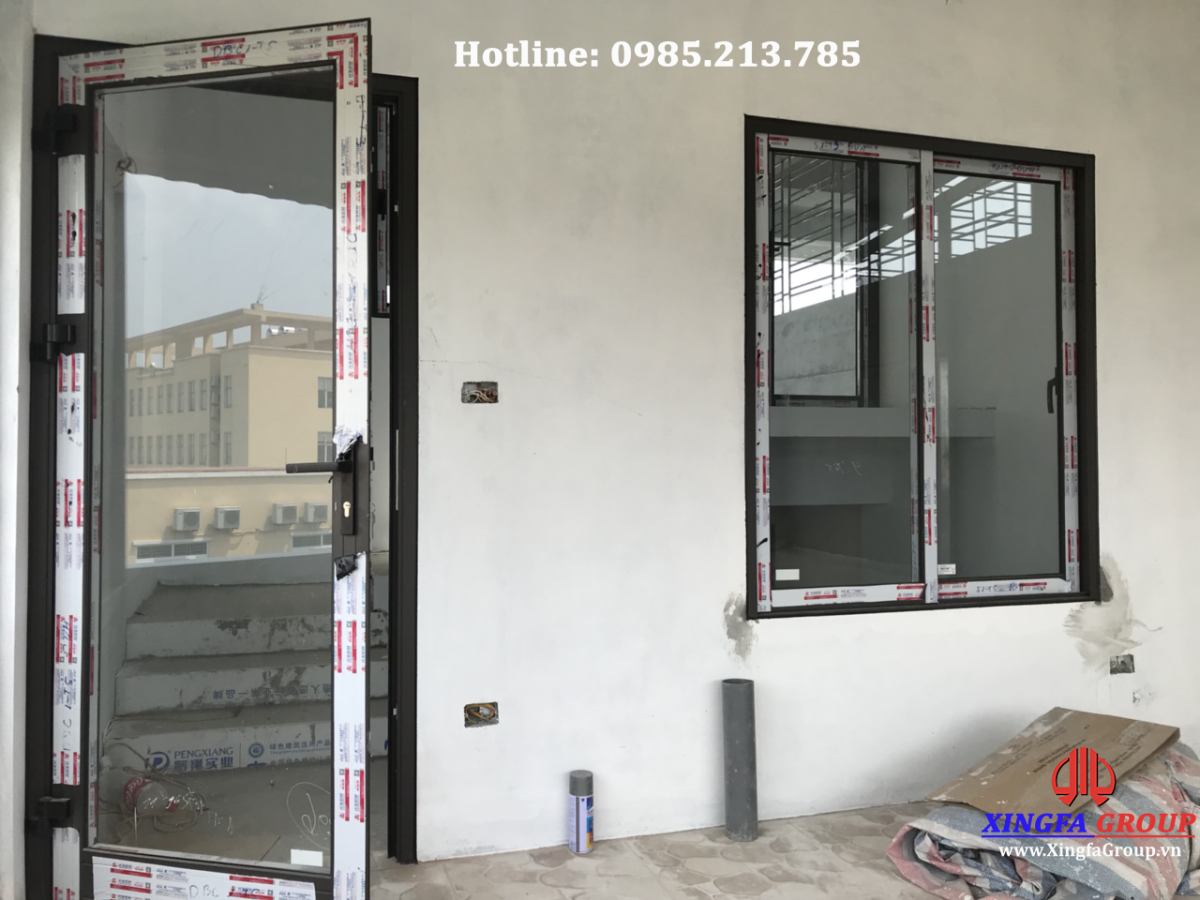 Mẫu cửa đi mở quay 1 cánh nhôm Xingfa hệ 55 và cửa sổ mở trượt 2 cánh nhôm Xingfa hệ 93 dầy 2.0mm.