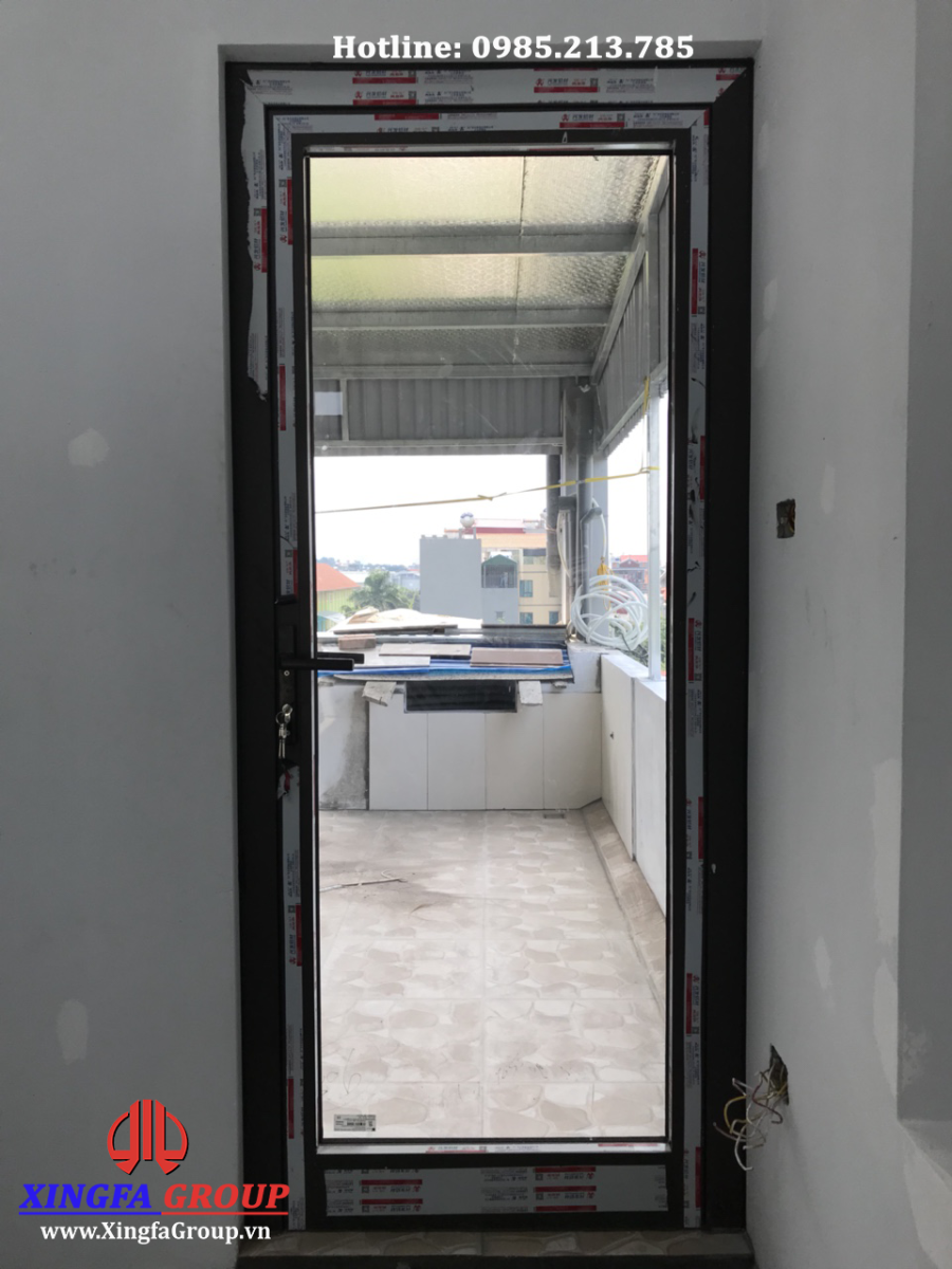Cận cảnh mẫu cửa đi ra ngoài sân phơi tầng 5 mở quay 1 cánh nhôm Xingfa hệ 55 dầy 2.0mm.