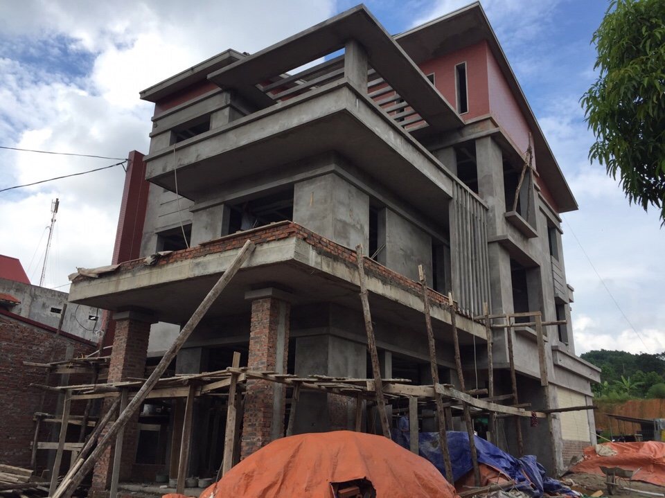 Phần nề công trình đang bắt đầu hoàn thiện kích thước để đo đạc sản xuất cửa nhôm Xingfa