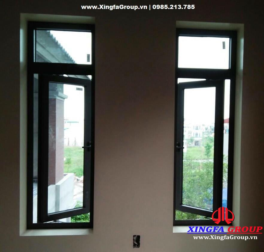Vách kính cố định kết hợp cửa sổ mở quay nhôm Xingfa